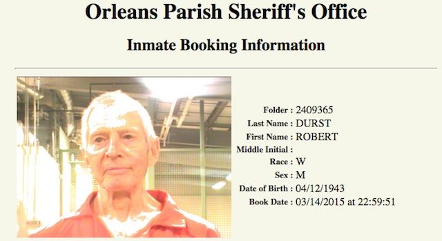 March 16 2015: Robert Durst is arrested in New Orleans.