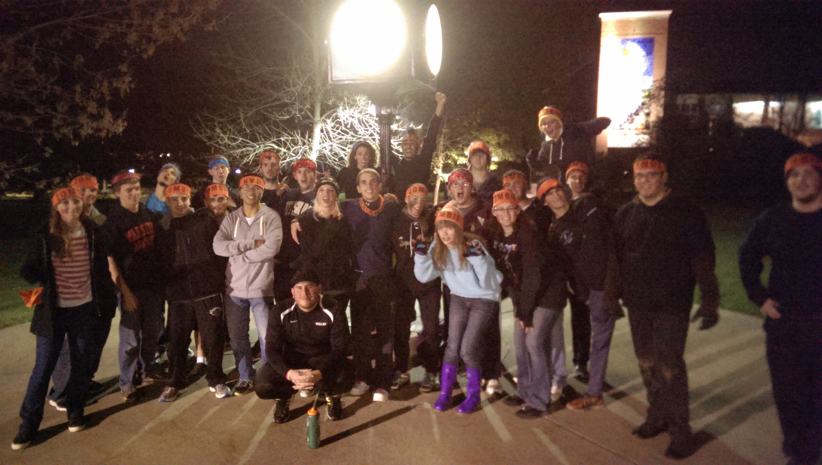 The game starts out with one singular zombie, and as the days go by, that zombie’s goal is to infect as many people as it possibly can. Once others have been infected, they too have the job of infecting other humans. A zombie is indicated by wearing an orange bandana around their head, while humans wear their bandanas around their arms.
