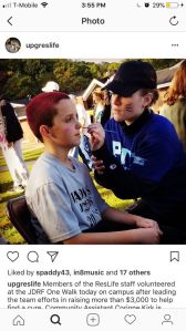 Community Assistant Corinne Kirk paints the face of a young supporter at the walk. Photo Credit: @upgreslife on instagram.
