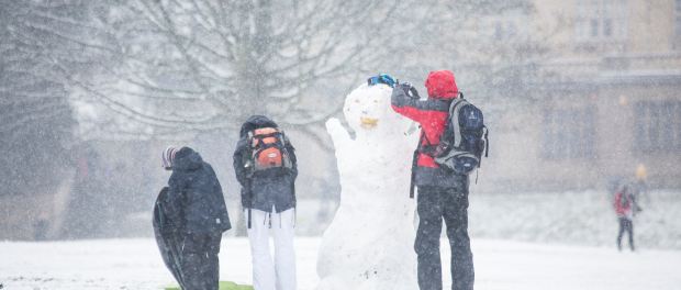 I’m lucky to have a huge backyard with plenty of room for building snowmen, but I realize that many students who live in dorms or off-campus apartments don’t always have a large, flat surface available outdoors to participate in this classic winter activity.