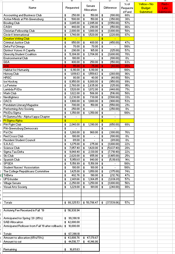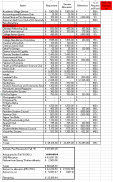 For Spring 2020, clubs requested a total of $88,325.53 from SGA, and SGA allocated $50,786.47, plus SAB’s budget.