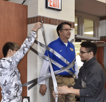 To help raise money for Pitt Day of Giving and to celebrate President’s Day, President Gregerson agreed to be duct-taped to a wall! Students were handed out giveaways and took selfies with Bruiser and our duct-taped President.