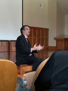 President Gregerson spoke of Pitt-Greensburg’s current and future financial situation during a town hall meeting in the chapel on Feb. 20. Faculty and staff, as well as representatives from the Student Government Association, attended.