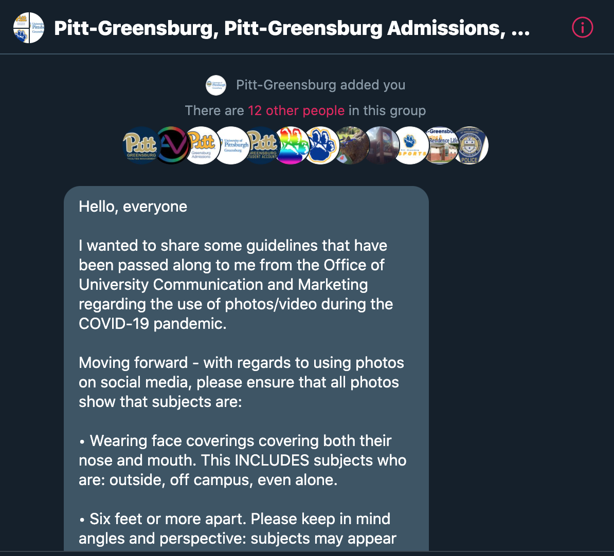 “Moving forward – with regards to using photos on social media, please ensure that all photos show that subjects are: