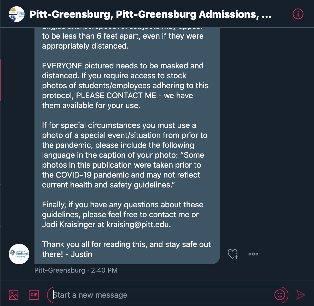 On Tuesday, Nov. 17, we received a direct message on Twitter from Pitt-Greensburg’s official account stating the following: