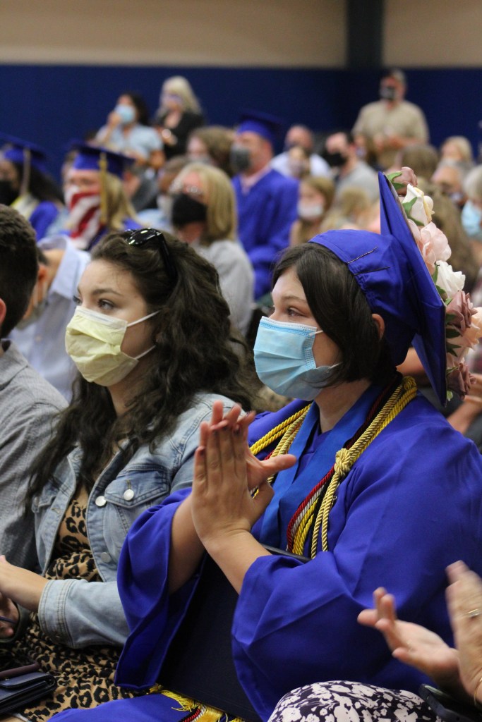 Miranda Smith, who graduated Magna Cum Laude with a Bachelor of Arts in communications, talks with family before the ceremony.