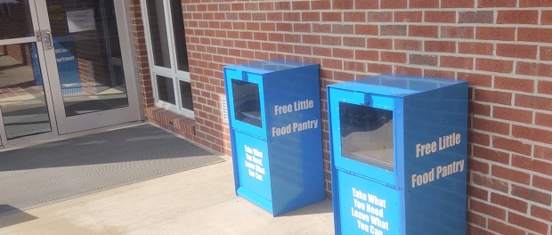 The blue pantries are available outside of Millstein Library on the sidewalk or on the second floor of the library’s foyer during operating hours.