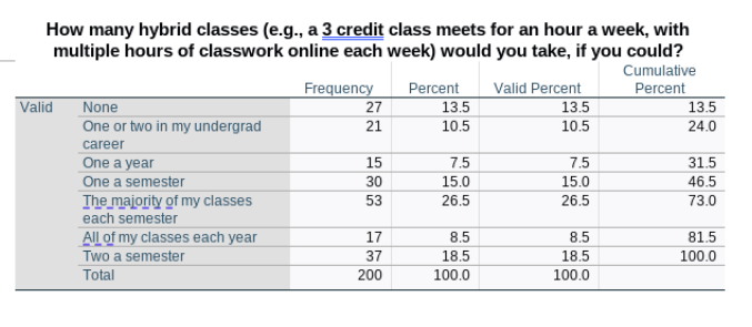Recently, the committee sent out a survey for students to fill out in regards to their feelings of online/hybrid classes. Less than two days after it was sent out, they got nearly 200 responses from a variety of students.