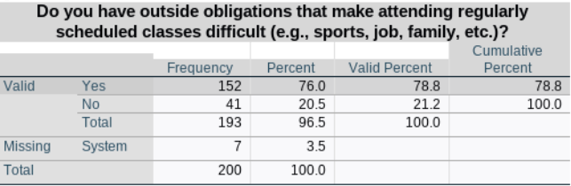 Nearly 80% of the students who responded to the survey agreed that outside obligations can make it hard to keep up with school attendance.