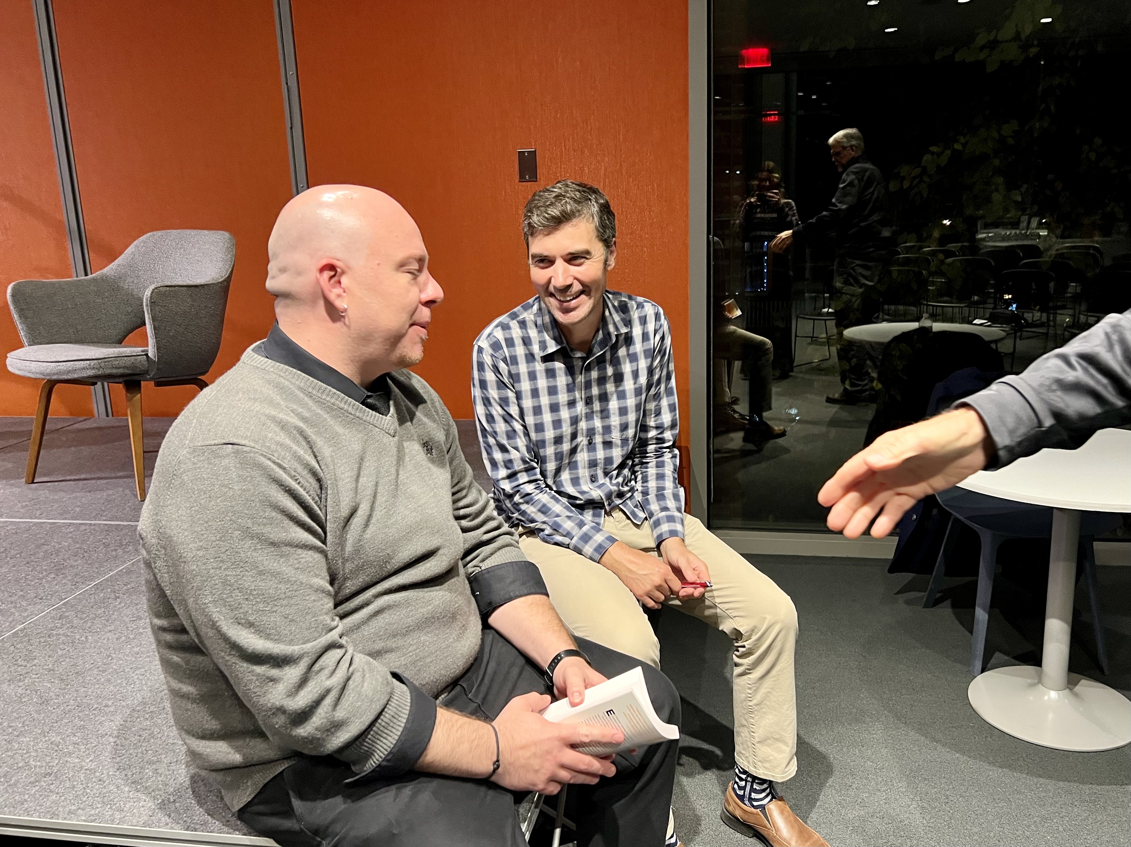 img_2747 Timothy Holler, PhD (left) and Eli Saslow (right) chat after Q&A at the Westmoreland Museum for American Art