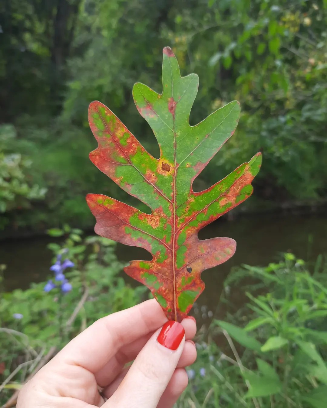 1000011702 Pictured: White Oak leaf. “I found this next to Slate Run creek. The leaf was changing color,” Holly says. “I love sharing pics of colorful leaves this time of the year!” Photo Courtesy of Holly Chenoweth