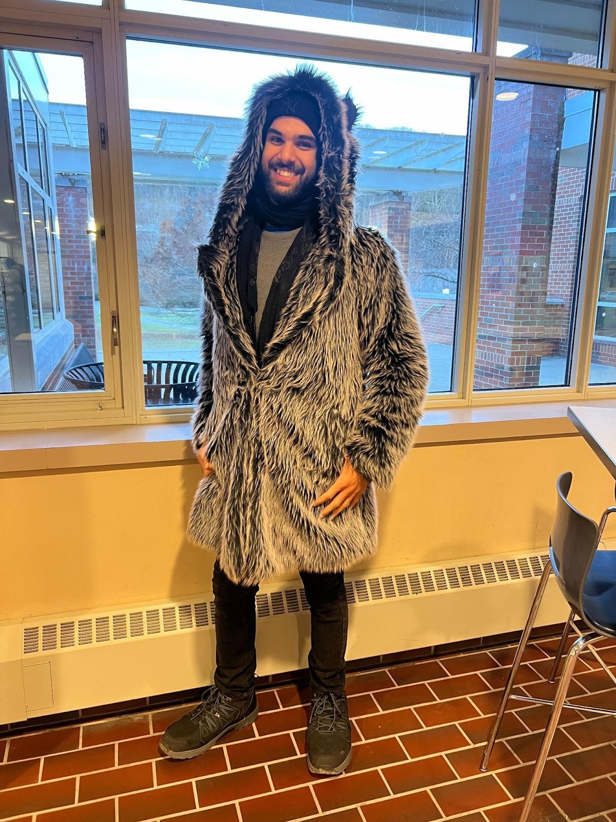 “I like the aesthetic currently, everybody in coats and hats and stuff. Everybody looks cozy or more relaxed. It’s the extra pieces of clothing, yeah?”
