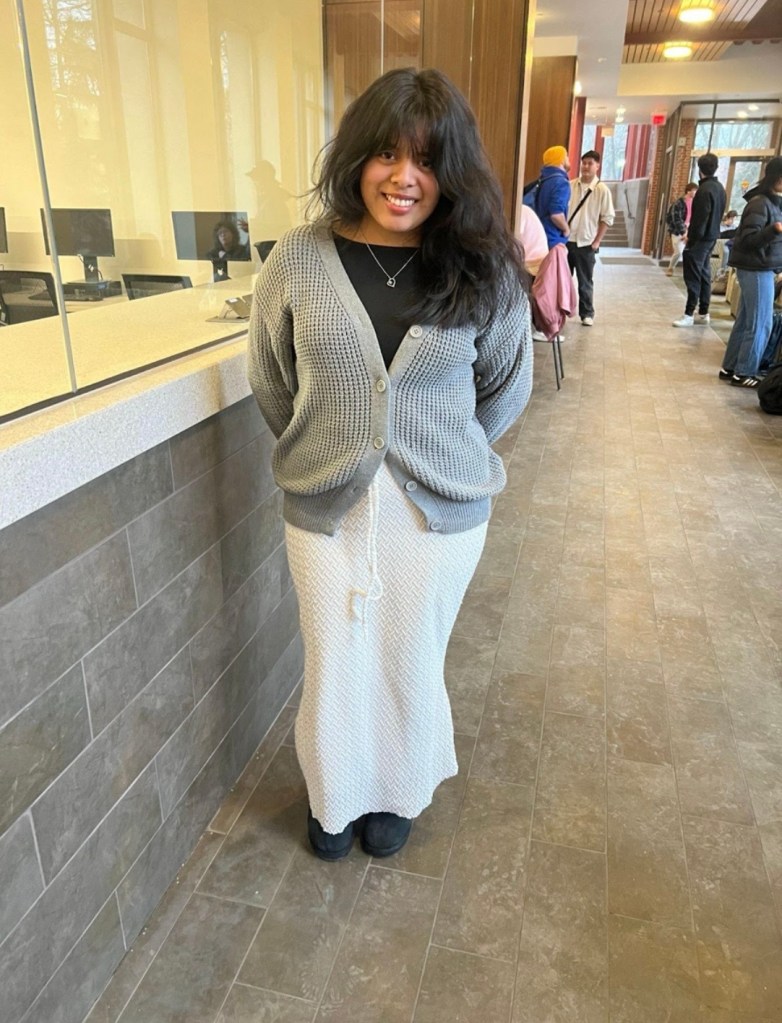 “I would say I’m definitely into the comfy-cozy vibe, like being able to show up to school and not wearing uncomfortable clothes for the appeal. I just love showing up in baggy clothing – baggy, that’s the trend.