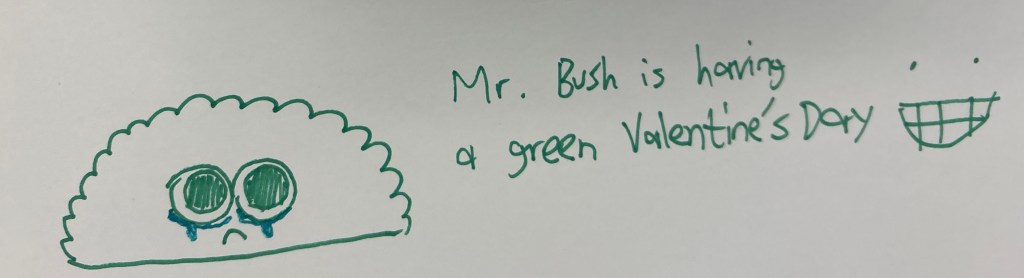 Norris wrote, “ Mr. Bush is having a green Valentine’s Day.”