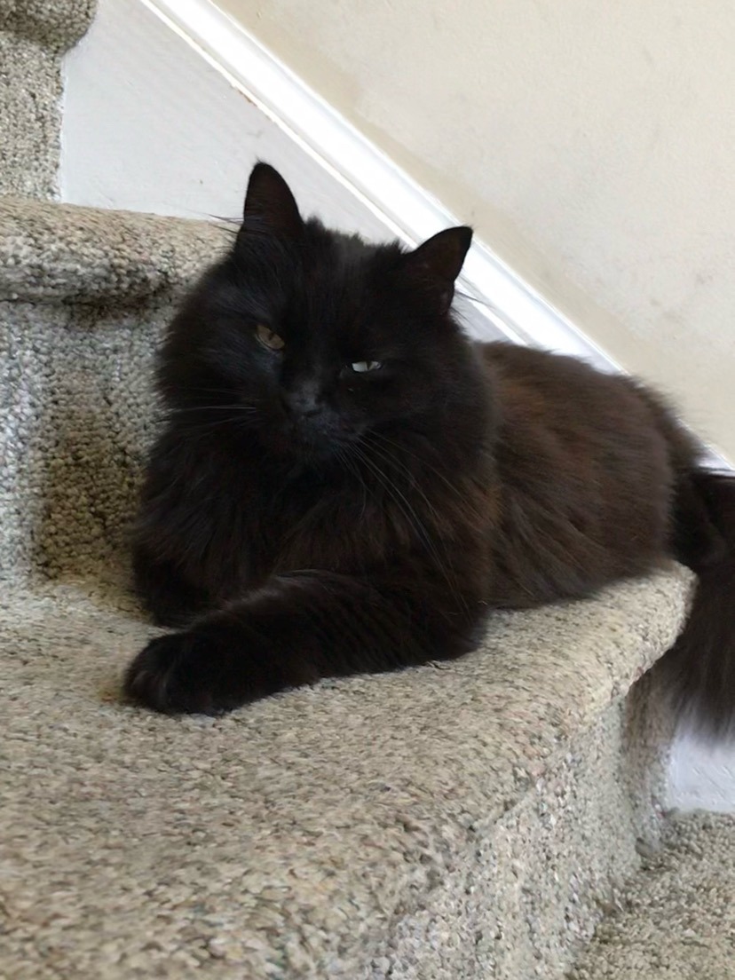Then we have Zara, who is 12. She has long, domestic hair, and she’s also a black cat. She was abused when she was little, so we kind of got her as a rescue.